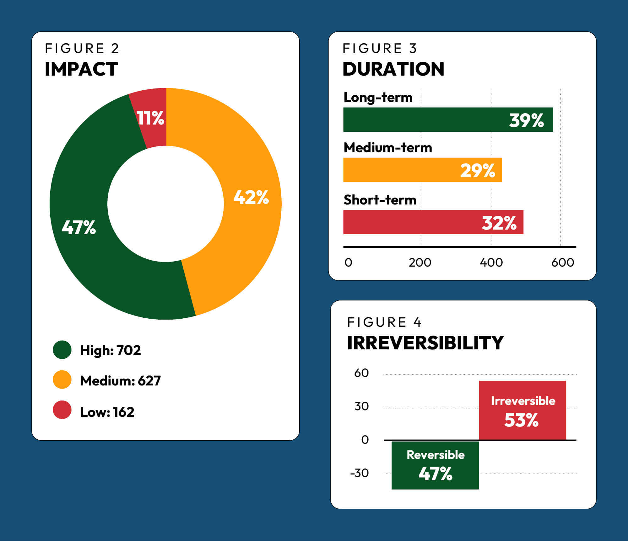 While 53 per cent of the activities were viewed as having irreversible effects, 47 per cent were seen to have their effects as reversible (Figure 4). The proportion of activities whose effects are seen as reversible is nearly the same as the proportion of activities whose effects are seen as irreversible.