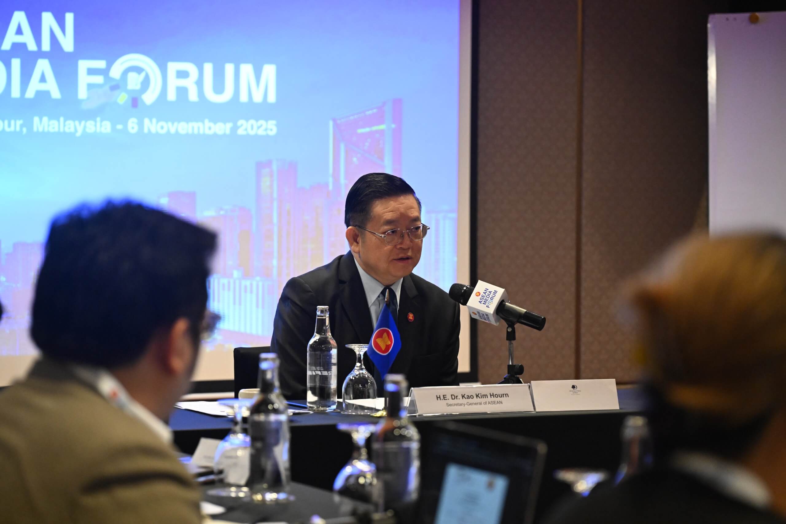 The Secretary-General of ASEAN, Dr. Kao Kim Hourn, participated in an interface session with regional media ahead of the opening of the 9th ASEAN Media Forum in Kuala Lumpur, Malaysia, on 6 November 2025. During this interactive session, SG Dr. Kao shared insights on ASEAN’s major milestones and key deliverables achieved under Malaysia’s Chairmanship in 2025, while highlighting the region’s collective efforts to advance ASEAN’s priorities and address emerging challenges. The discussion provided a candid, constructive exchange between the Secretary- General of ASEAN and the regional media representatives, refl ecting ASEAN’s commitment to transparency, collaboration, and people-centred communication.